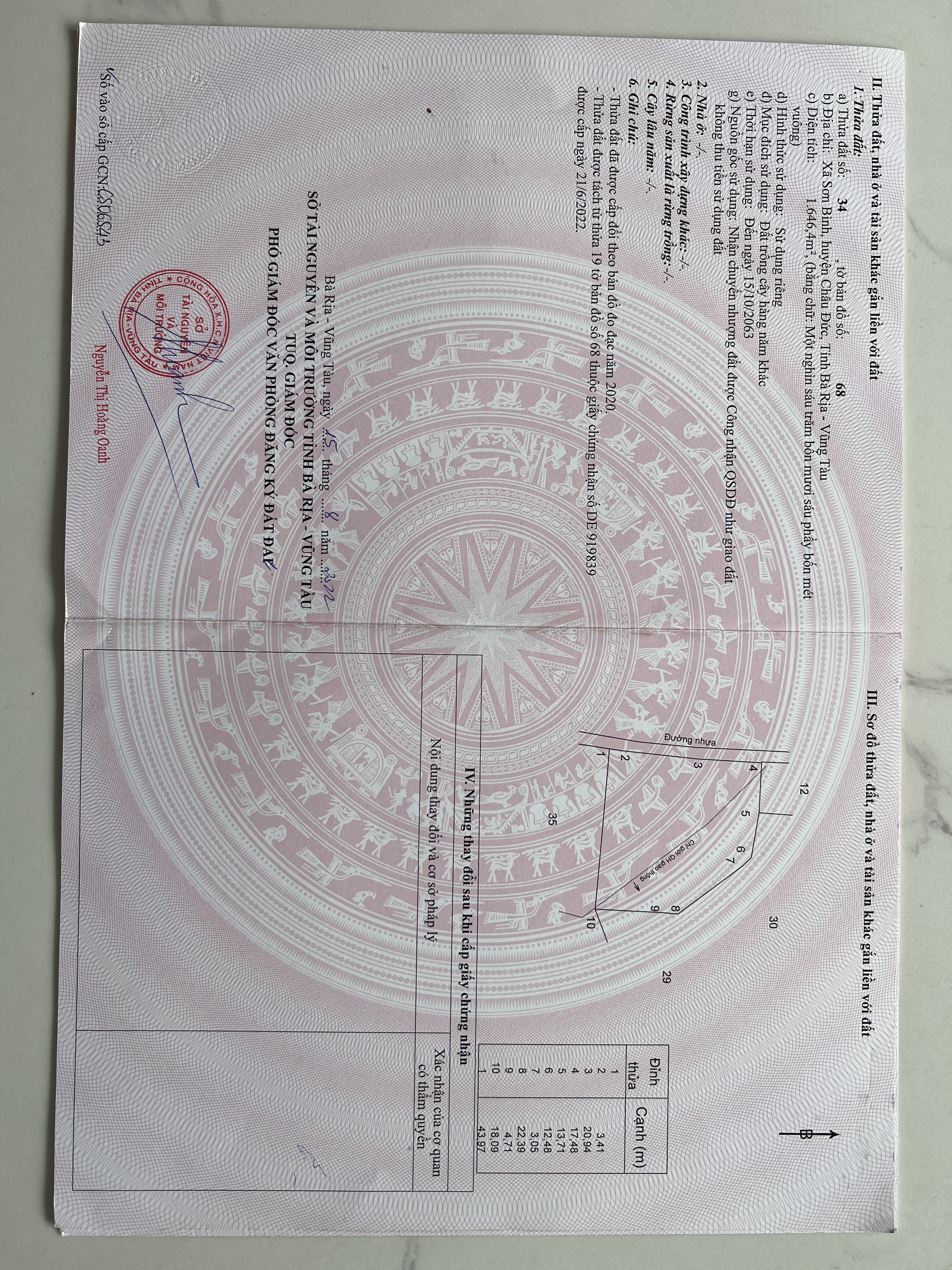 Dành cho những ai đang cần mua đất xã Sơn Bình, huyện Châu Đức. Cần bán gấp khu đất chính chủ có diện tích 1432m2, có view đẹp ngắm ra hồ Sông Ray, đường nhựa gần trung tâm và đầy đủ giấy tờ pháp lý đang tọa lạc tại xã Sơn Bình, huyện Châu Đức, tỉnh Bà Rịa - Vũng Tàu. Vì cần bán gấp nên sẽ để lại giá ngon cho các anh chị em có nhã ý, ai quan tâm thì liên hệ với trực tiếp chúng tôi qua số điện 0938769 239