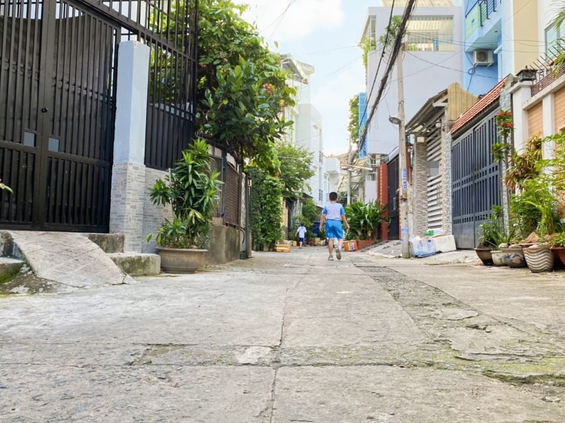 Hẻm ba gác rộng rãi sạch sẽ, trước nhà 4m, dân trí cao, cách bãi đậu xe hơi 30m.