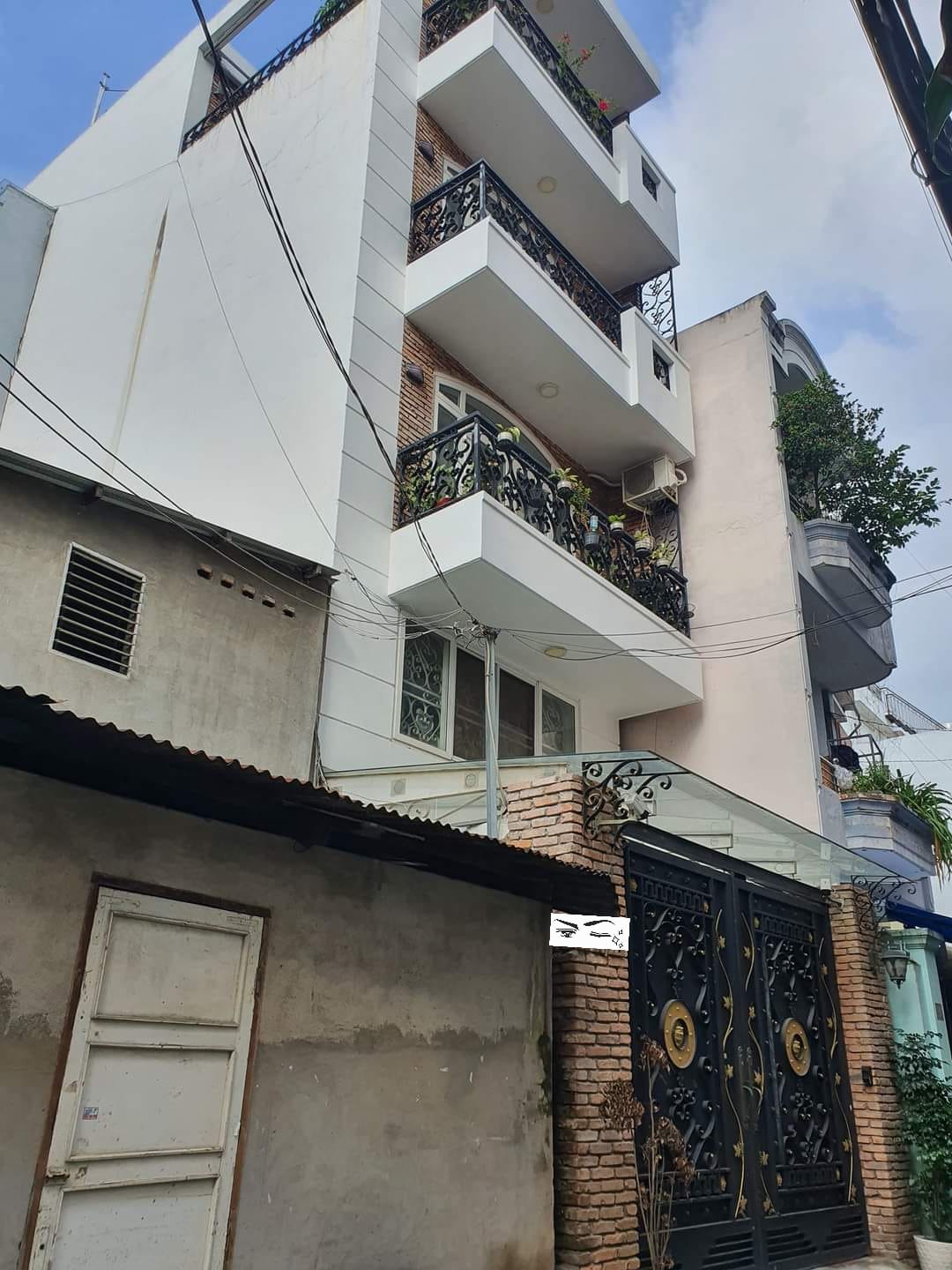 + Kết cấu: 1 trệt 3 lầu sân thượng, mái che. Tổng 6PN, 6WC, bếp, phòng khách đỗ ô tô, phòng thờ, phòng giặt, sân thượng trồng cây cảnh. Cửa trước bằng Euro Windown nên cách âm cực tốt, tường ốp gạch thẻ cổ, cửa các phòng đều gỗ cao cấp.